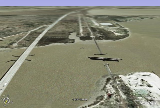 This image includes what must have been the original site of the depot. The track curves slightly to the left in the distance, which agrees with the right of way drawn on the geodetic survey map. According to a historical note I found on a web-site, the San Leon Depot building was moved to Clear Lake Shores and converted into a residence.